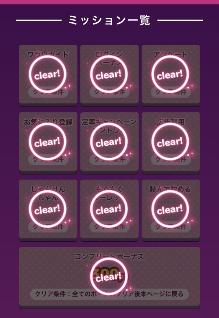dジョブのポイント承認条件とは別ですが、スタンプを全部あつめると300pt(=300円)もらえます。