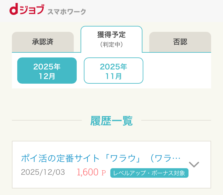 - 利用したポイントサイト:dジョブ