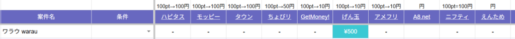 無料登録案件×4 & 初回ボーナス:540円(ワラウで実施)
