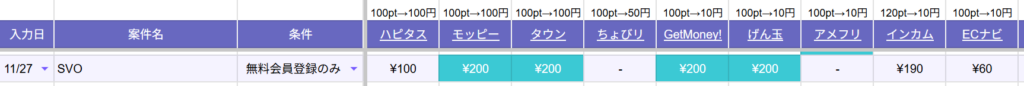 リサーチ時点で、最高値はモッピー・ポイントタウン・GetMoney!・げん玉の4サイト。