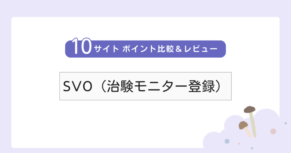 今回は、SVO(治験モニター無料会員登録)の案件を見つけましたので、シェアしたいと思います。