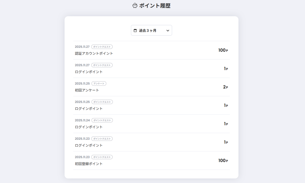 毎日ログインで 1pt もらえるのも、地味にうれしいですね。