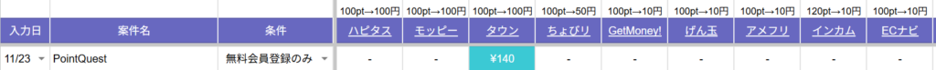 ※ 調査時点ではPointQuestは、ポイントタウンだけにあります。↓