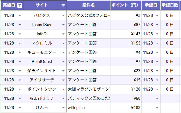 • アンケート回答、低額のもの(2円とか)に時間取られてしまった